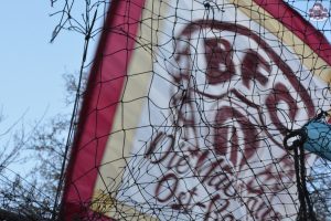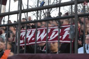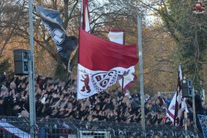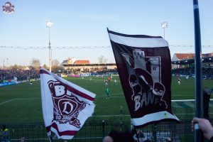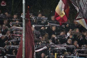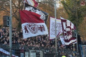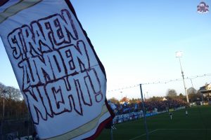 Nach einem ereignisreichen Pokalfight in vielerlei Hinsicht ging es für uns nur drei Tage später nach Babelsberg zum nächsten Duell im Abstiegskampf. Man hatte also kaum die letzten Nachwirkungen des Pfeffersprays verarbeitet und schon ging es wieder weiter im Ligabetrieb. Nichtsdestotrotz machte sich ein solider Haufen aus Alt-Hohenschönhausen auf den Weg nach Potsdam, der dann insgesamt dennoch gerne etwas größer hätte ausfallen können. Da hat man den Block vor einigen Jahren noch deutlich voller gemacht, obwohl es damals ebenfalls um nichts mehr ging.